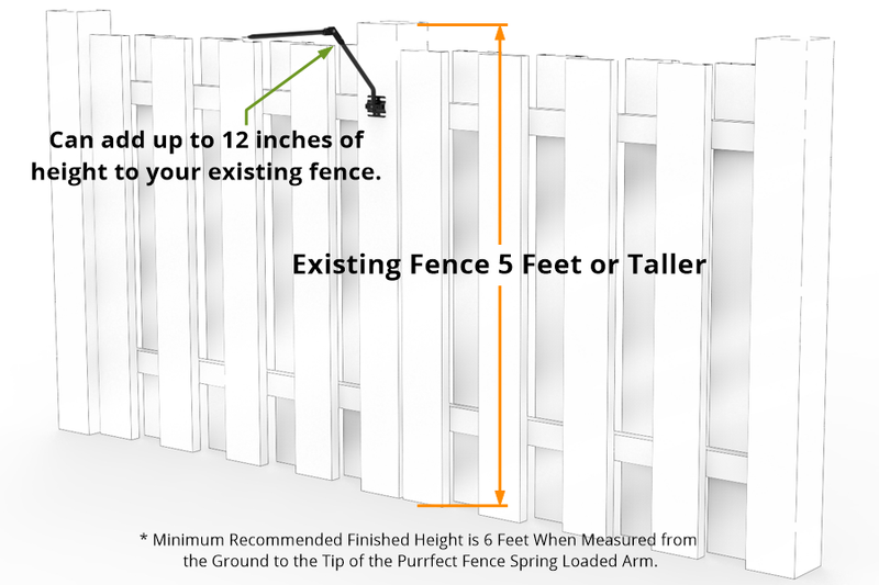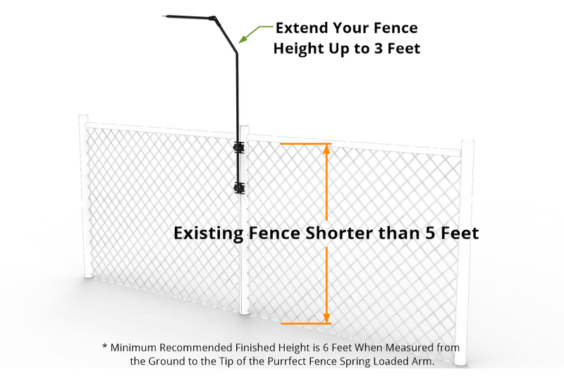 For fences shorter than 5 feet or with large gaps, we recommend using a free-standing cat fence.