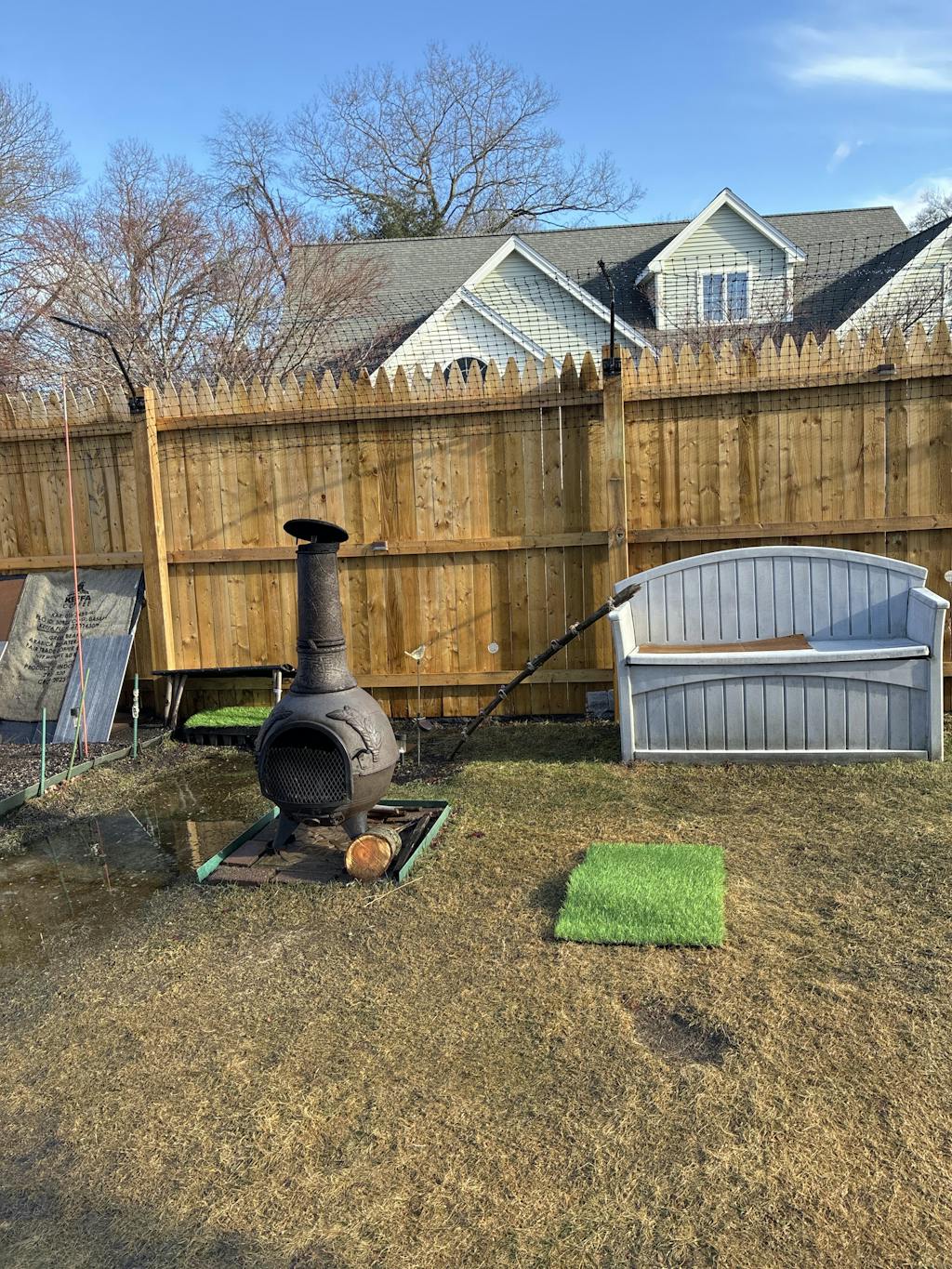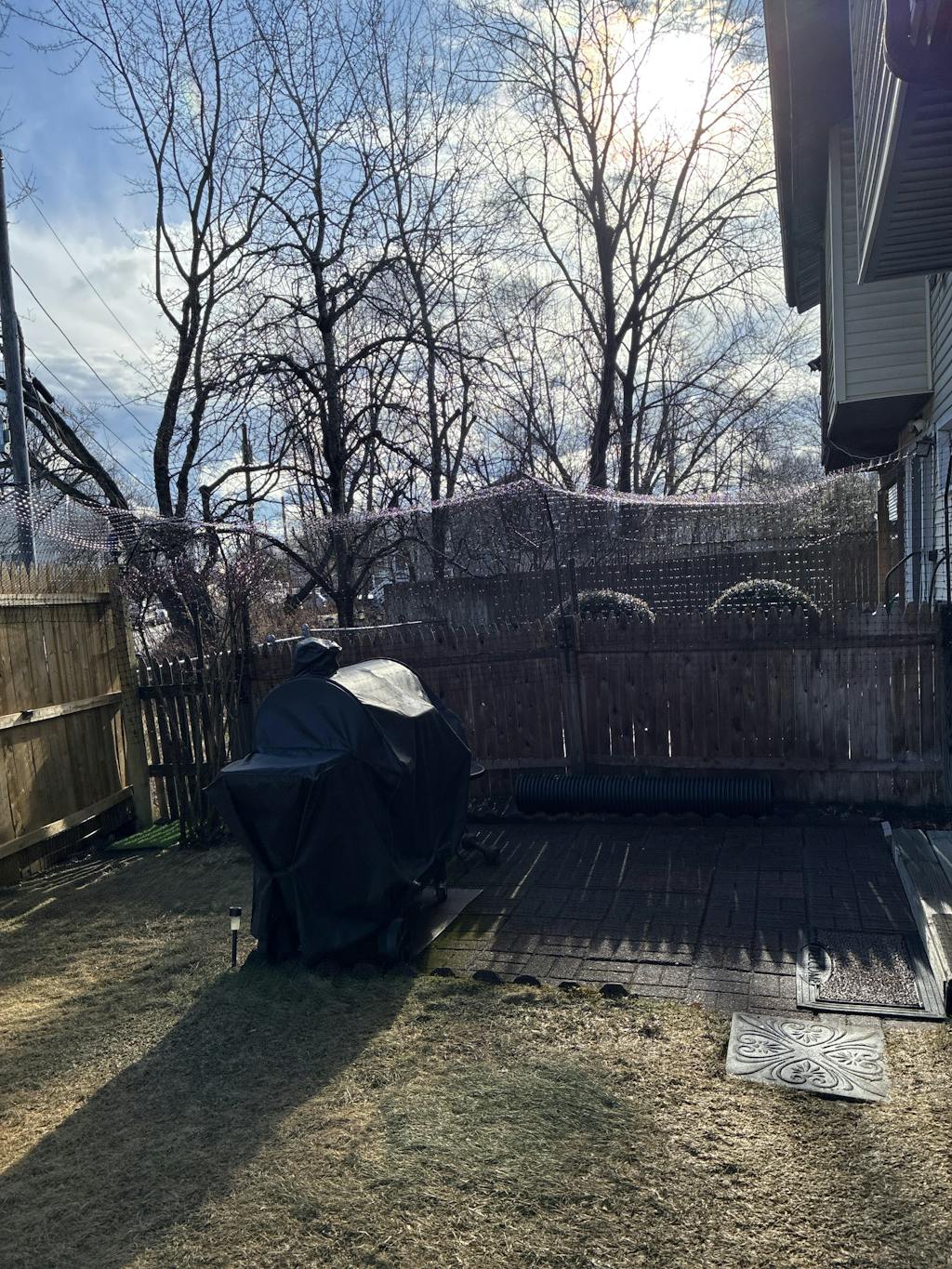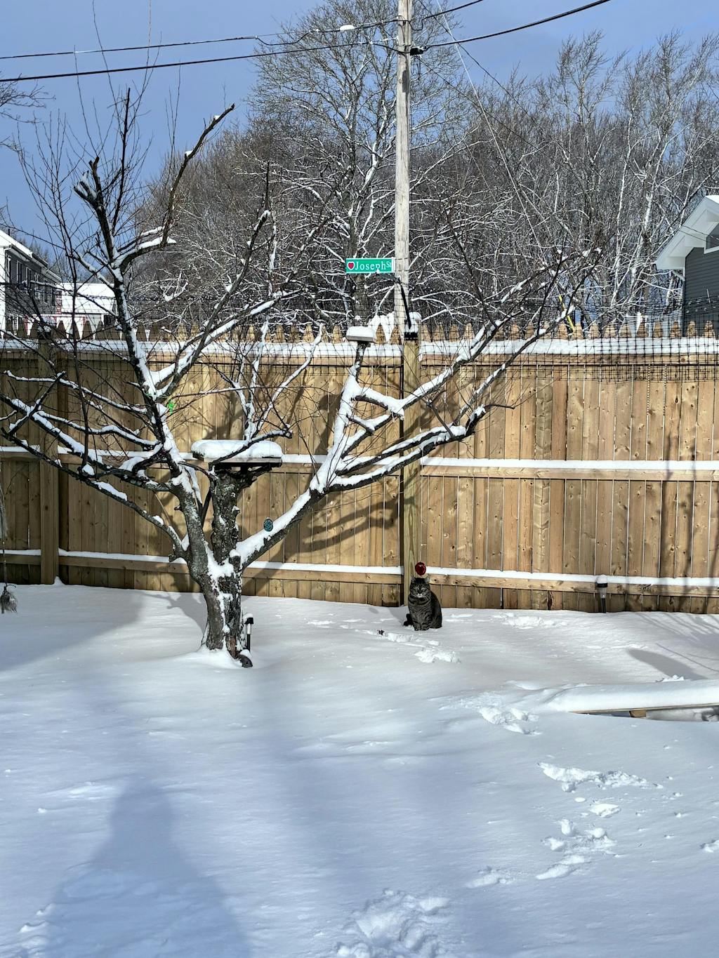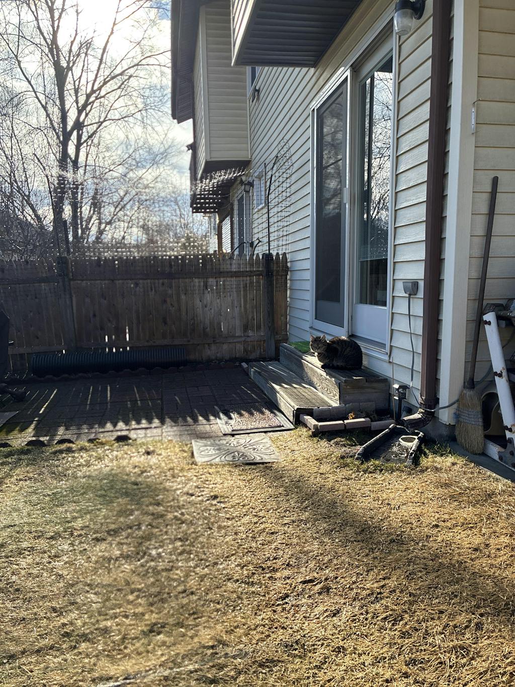 Assembly was mostly straightforward, though the holes on the platform boards didn’t line up with the bracket at first. I contacted Purrfect Fence Support on a Saturday and got a response by Tuesday letting me know they were sending replacement cedar boards. To my surprise, they arrived already attached to a new bracket—excellent customer service! The picture with the pole tied to the patio post is before securing the pole with the self drilling / tapping screws.