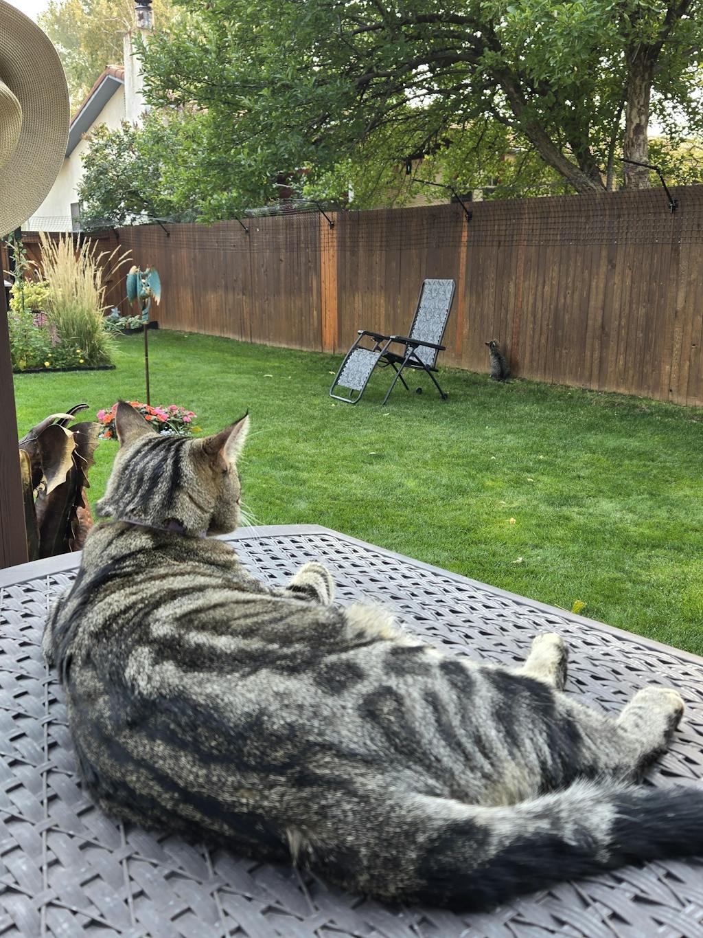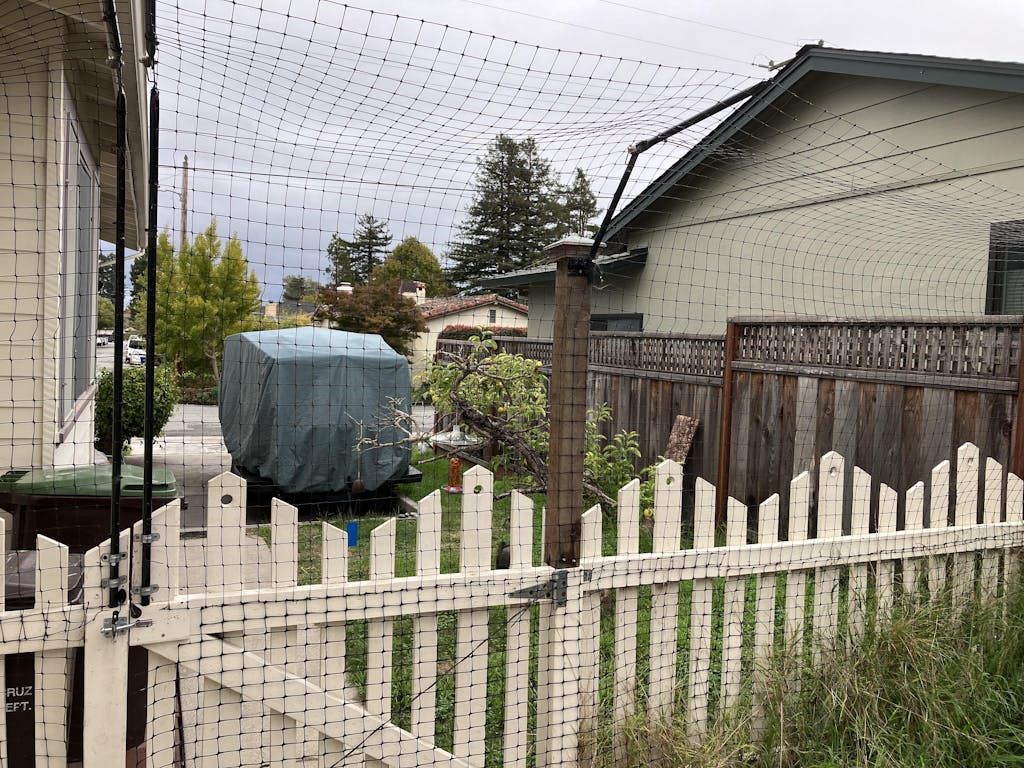 Five years ago we got new kittens (yes, COVID kittens) but each of my 2 pairs of cats had lived for 15-20 years. We decided to enclose our backyard with the existing fence conversion because I had realized how harmful cats are to bird populations. We also were getting coyotes walking down the urban streets in the middle of the day, so keeping them in the back yard would hopefully keep them safe. The person who helped m plan my fencing system was a little leery about having a picket fence included on the system, but it has worked very well. The photo below shows how the fencing disappears and is barely visible. I was worried that it might make my back yard look like a prison! But it doesn't at all. Another benefit that I wasn't considering was that extension of the short picket fence has deterred coyotes from entering into the back yard from this side area. I still bring the cats in at night. The cats are very happy to be out in the whole back yard hunting bugs, butterfly and the occasional gopher. I'm writing this now since I had to order a couple of extra conversion brackets. I needed them to replace some brackets I had rigged up to help save on cost. This is an expensive (to me) system but hot having to take the cats to the vets after cat fights, or losing them to predators is so worth the investment. Thanks Purrfect fence!!