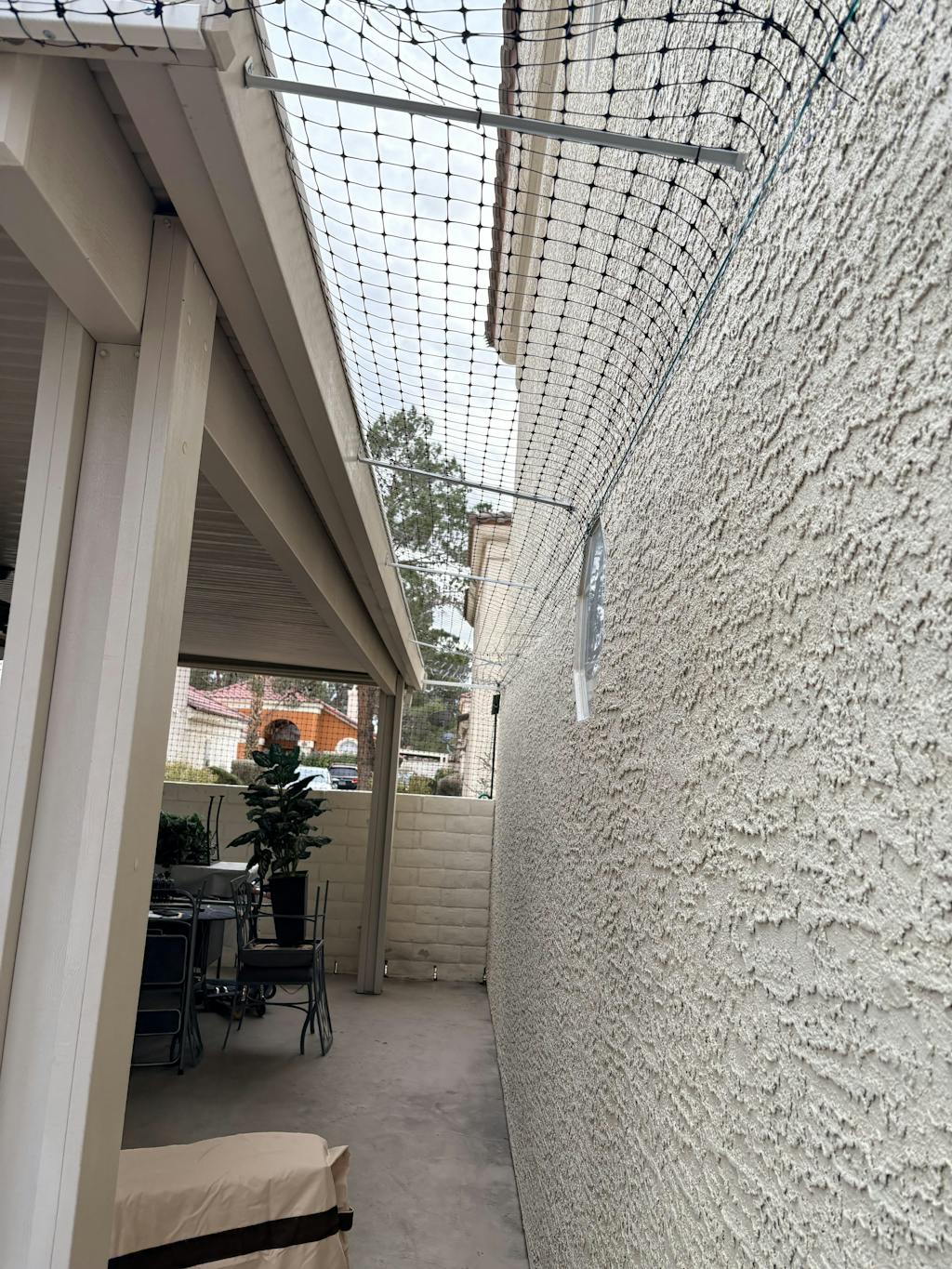 We have a large 4 year old cat and just got 2 kittens. My wife and daughter insist on keeping them as indoor cats. I don’t agree but I’m outnumbered! As a compromise, I bought the system to enclose our small patio. We currently have a small catio where the automatic pooper scooper is outside. I cut a small doggie\ cat door and the older cat goes out when he has to take care of business. We have 2 hawks that we know of in the neighborhood so I covered everything to prevent them coming in or our cats finding a way out. Now that the fencing is up, we plan to remove the catio and have complete access to the patio. So we will see how it works in the long term. The 2 kittens haven’t accessed it yet because we are waiting on the final shots.