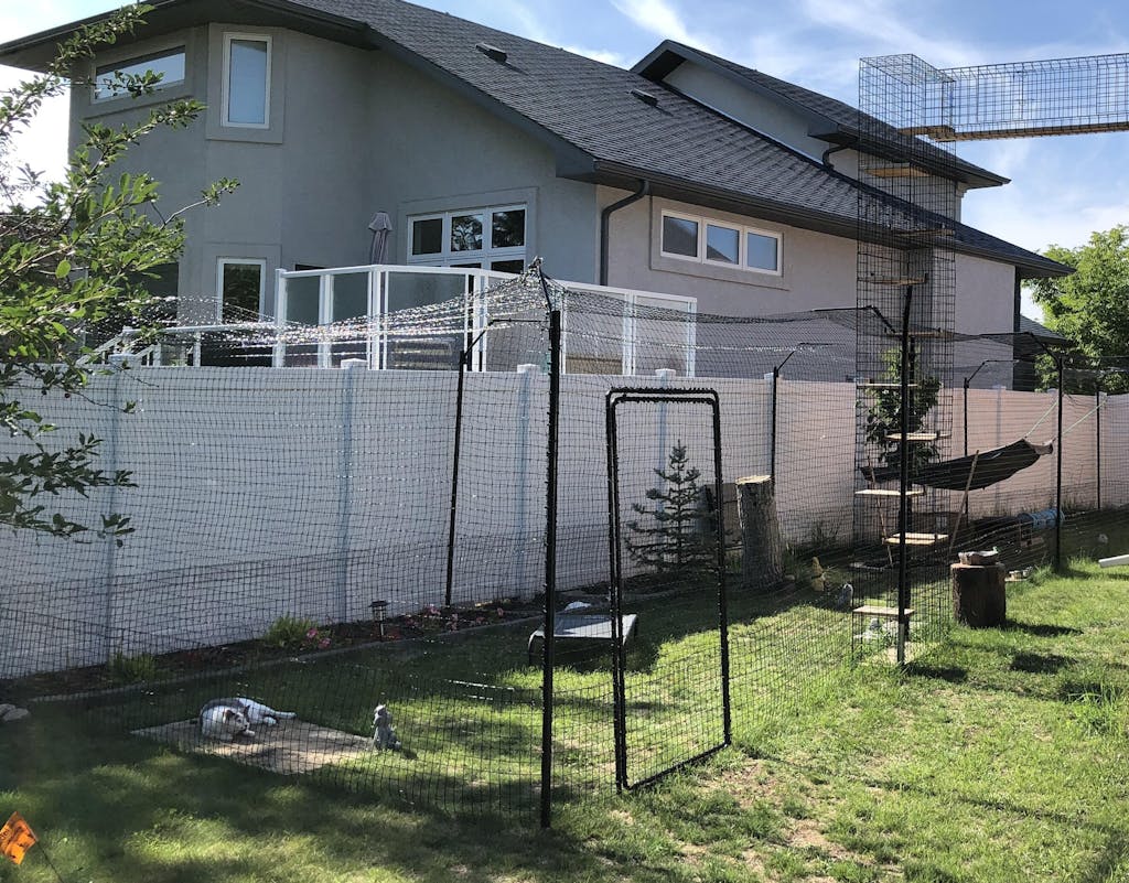Having an outdoor space for your cat increases its overall happiness and health, which allows you to feel at ease as a pet parent. Even though you want to keep your cat contained, it’s in your best interest to ensure you can get in and out of the enclosure as needed with a cat-proof gate.