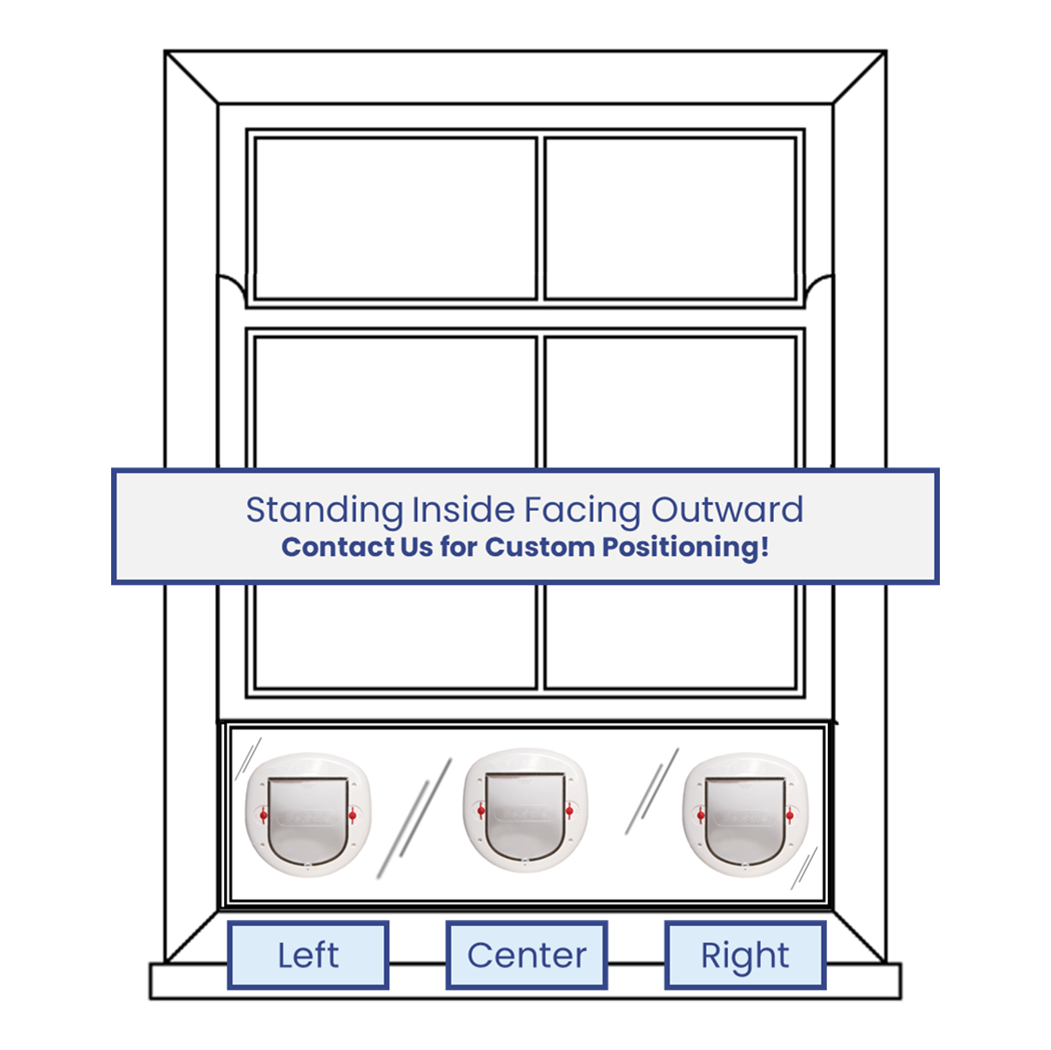 FREE Custom Design Services: If you need a different size or style cat door that is not listed please contact us for a custom quote! Our design team will work with you FREE to create a custom window insert that works perfectly for your exact window or use-case!