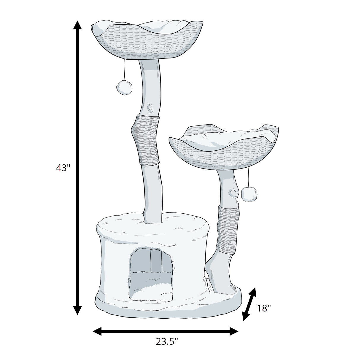 • Interactive Toys. Each Bungalow cat tree includes two faux rabbit fur balls for extra enrichment & play.
